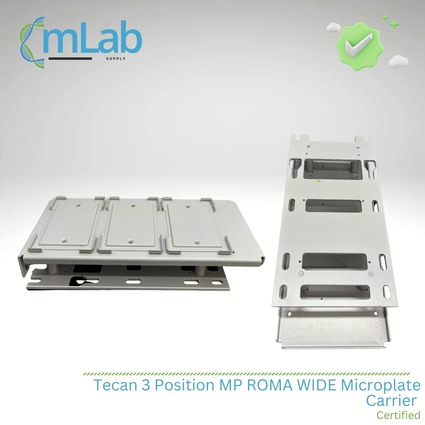 The Tecan 3-Position MP ROMA WIDE Microplate Carrier is a robotic-compatible deck carrier designed for use with Tecan liquid handling and automation platforms equipped with the ROMA arm. Built to accommodate wide-format microplates, this carrier enables stable, precise plate transport and positioning during automated assay workflows.